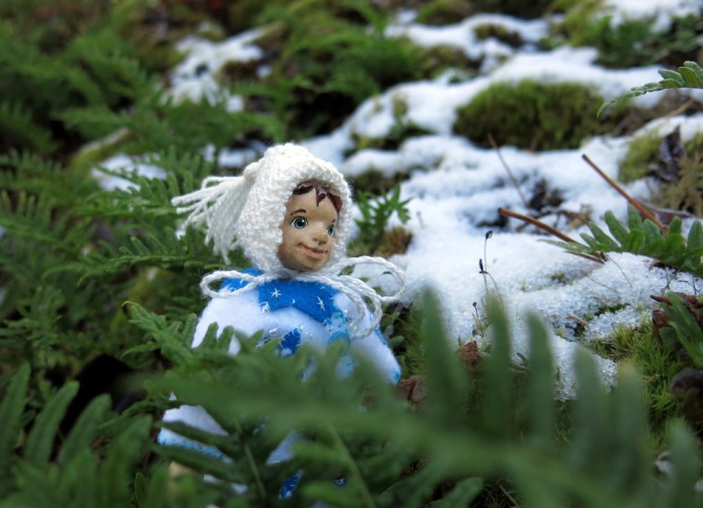 Min was happy to see the snow in our relative’s garden!
