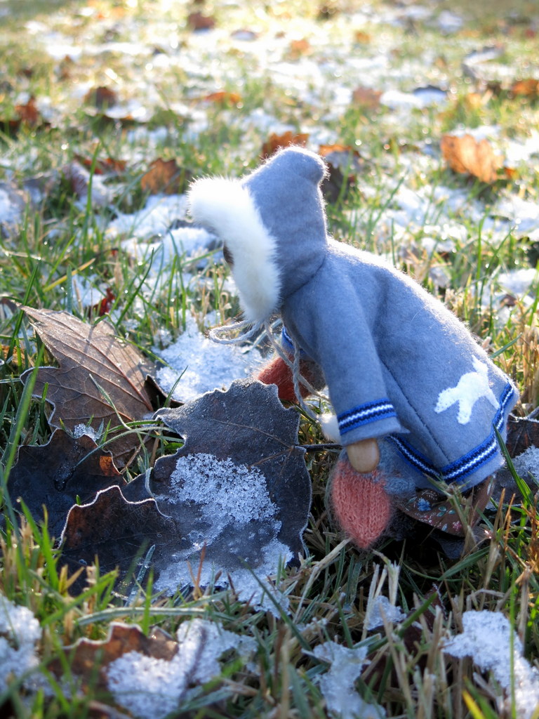 Min was happy to see the snow in our relative’s garden!
