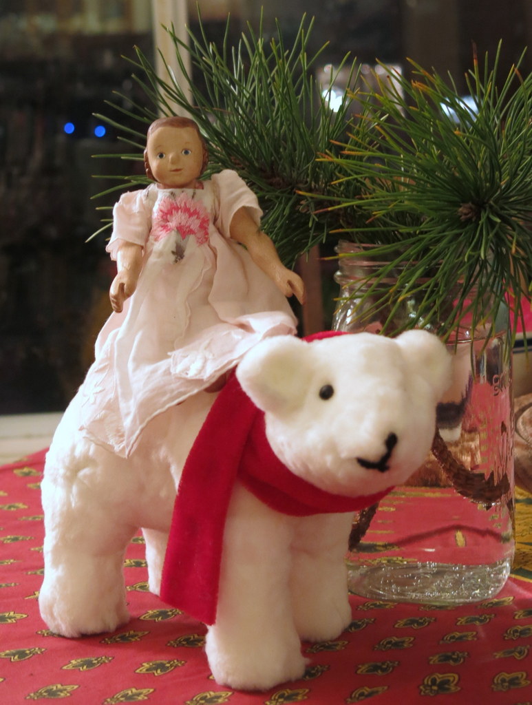 And Dulcie rode on the polar bear until she got to the Christmas tree…