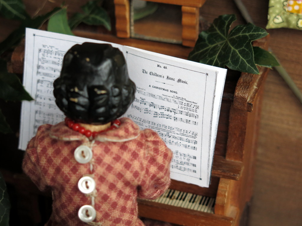 A lovely way to brighten the day for all of us…love the wall hanging and the holly and the piano AND the wonderful Hitty girls. also like that friendly reindeer.