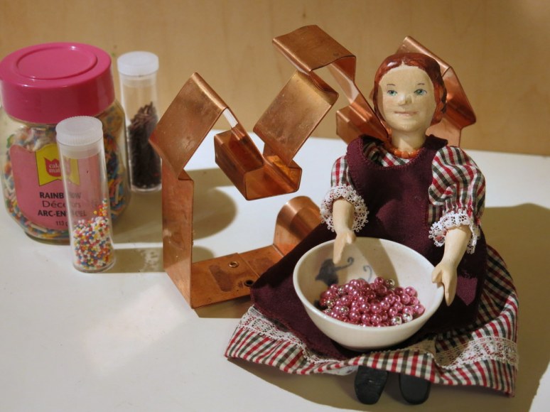 I carved Dulcie when my granddaughter was only a few months old. She is made out of sturdy wood, and with chunky limbs to withstand the hammering and biting phases of toddlerhood. I always thought this dear dolly would go live with my granddaughter at about age five, and to my great delight, while they were visiting at Christmas time, a special request was made (and happily granted) for Dulcie to go live with her own little girl!