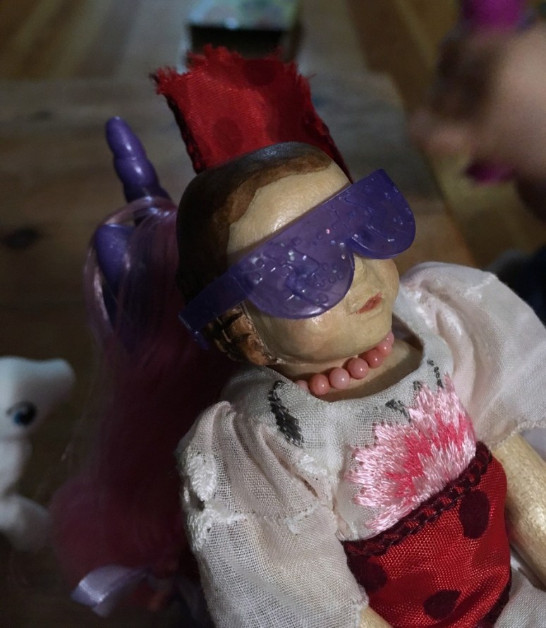 2. Who would have guessed that Dulcie was going to have such an adventuresome life with the smallest Quimper human. Taming unicorns and small brightly colored ponies is a BIG job!!