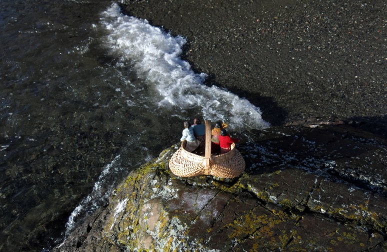 wow….tsunami warnings!! Not something we have to worry about here in Mo. (ask me about tornado warnings when summer gets here). Glad you are above the zone!! Love seeing the girls exploring their beach. That is a nifty basket they were riding in. And they were all dressed so warmly. Great pics.