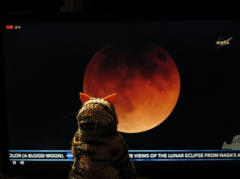 Seeing the twins wake up to view the moon was such a sweet photo. They were all set to go outdoors in their warm cat sweaters, telescopes at the ready, only to find it raining…but those two always make the best of any situation. The NASA channel is great, and those photos were wonderful.