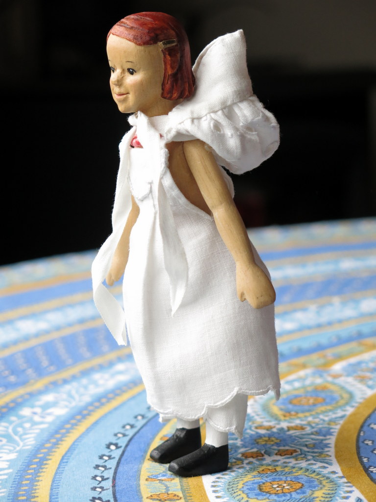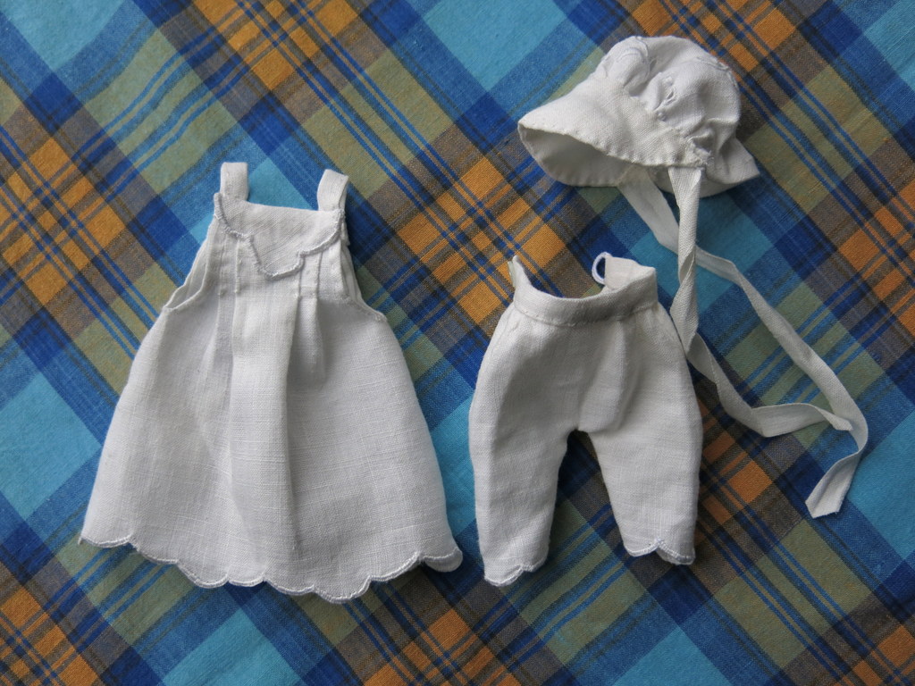 …one scalloped linen napkin turned into a Pinafore, Pantalettes and a bonnet!!