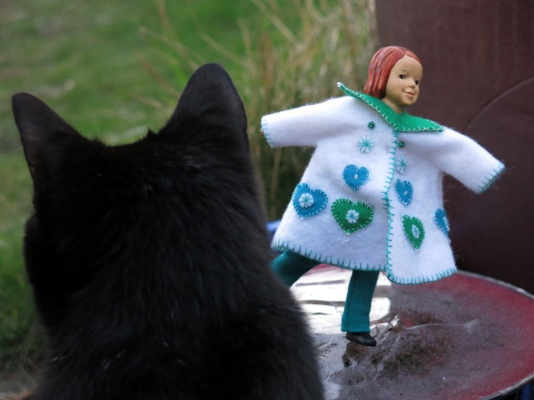 1. Aurelia has amazing agility and strength for a wee wooden doll, but she looks oh so practiced and confident despite the dark admirer.