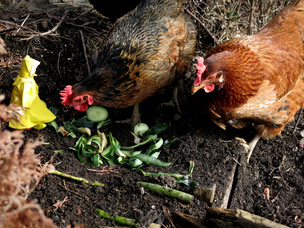 …and the chickens officiously turning over the compost!