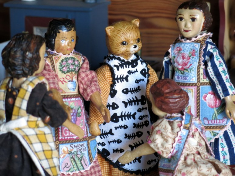 The combo of dress and pinafore on Rose is picture perfect. I love the hanger holding another completed one…Your Hittys are ready for Spring… that seed packet fabric was a great find. And as so often with your fun and amazing blog you ended it with a surprise and a smile.