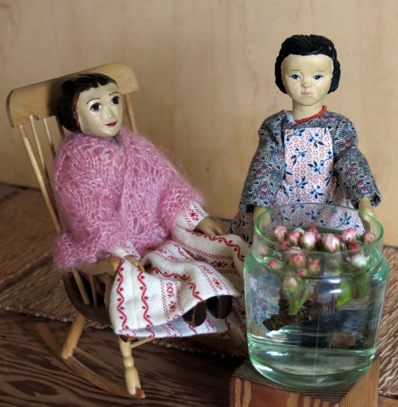 • We hadn’t noticed how nicely her dress matches, but you are right, it does! We liked the grey fabric with little dots of colour, and thought it would make a nice Hitty dress.
