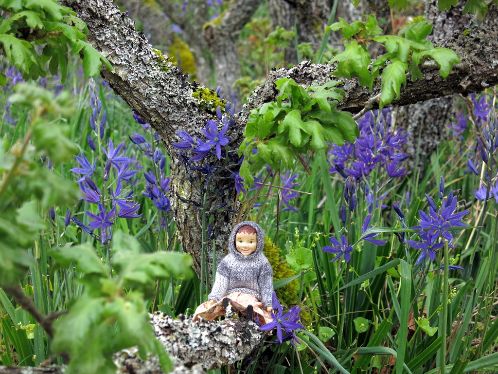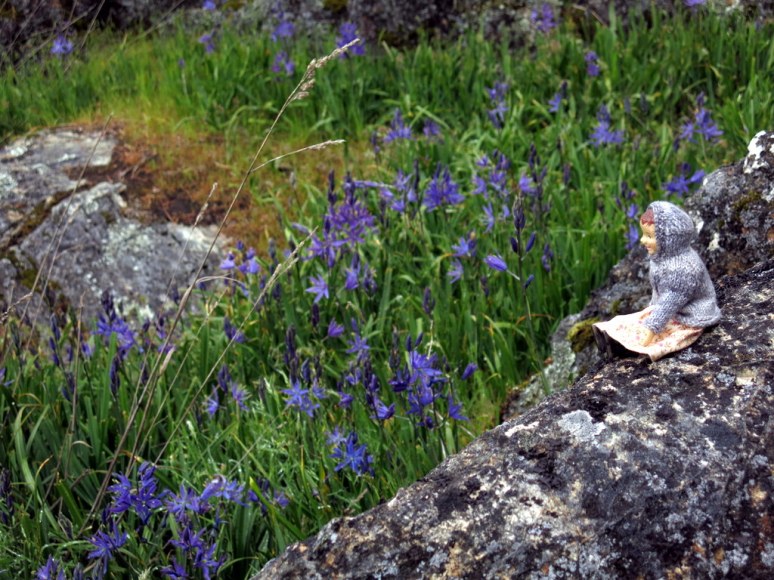 …up the hill to the Camas meadows, where heavenly blue flowers grow between gnarled Garry Oak trees.