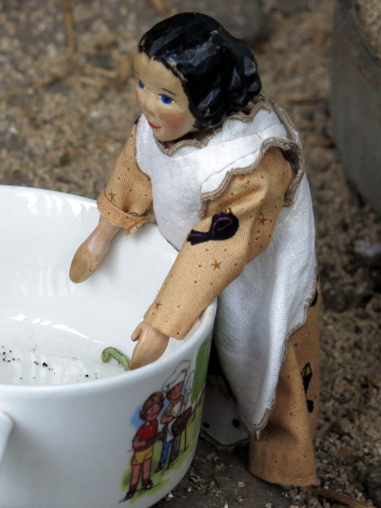 1. Marie Claire is quite approving of Tansy’s approach to the fancy chicks. She is very pleased that Tansy realized she was dealing with poultry royalty and behaved accordingly. And Marie Claire is now parading about the house in her very own black chicken pinny…created by the talented Quimper human.