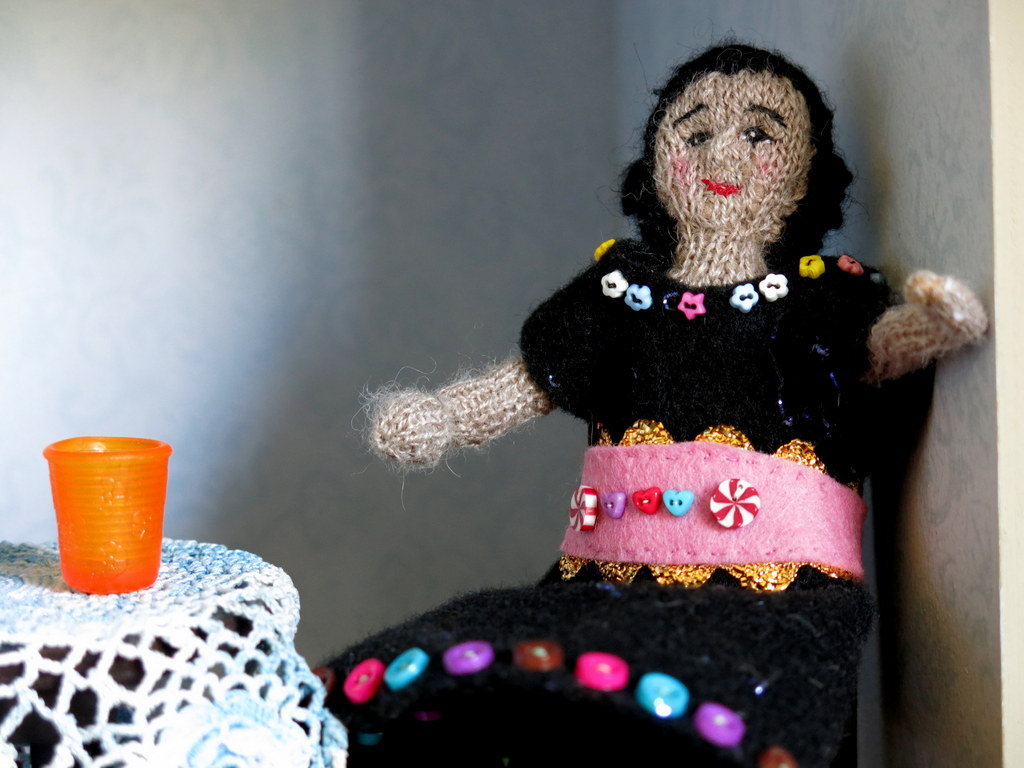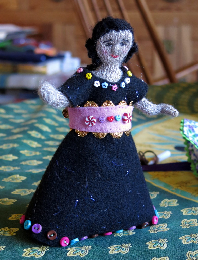 She is big! And she concentrated so hard! I believe some of those tiny buttons round the neck of Lala’s dress came from you!