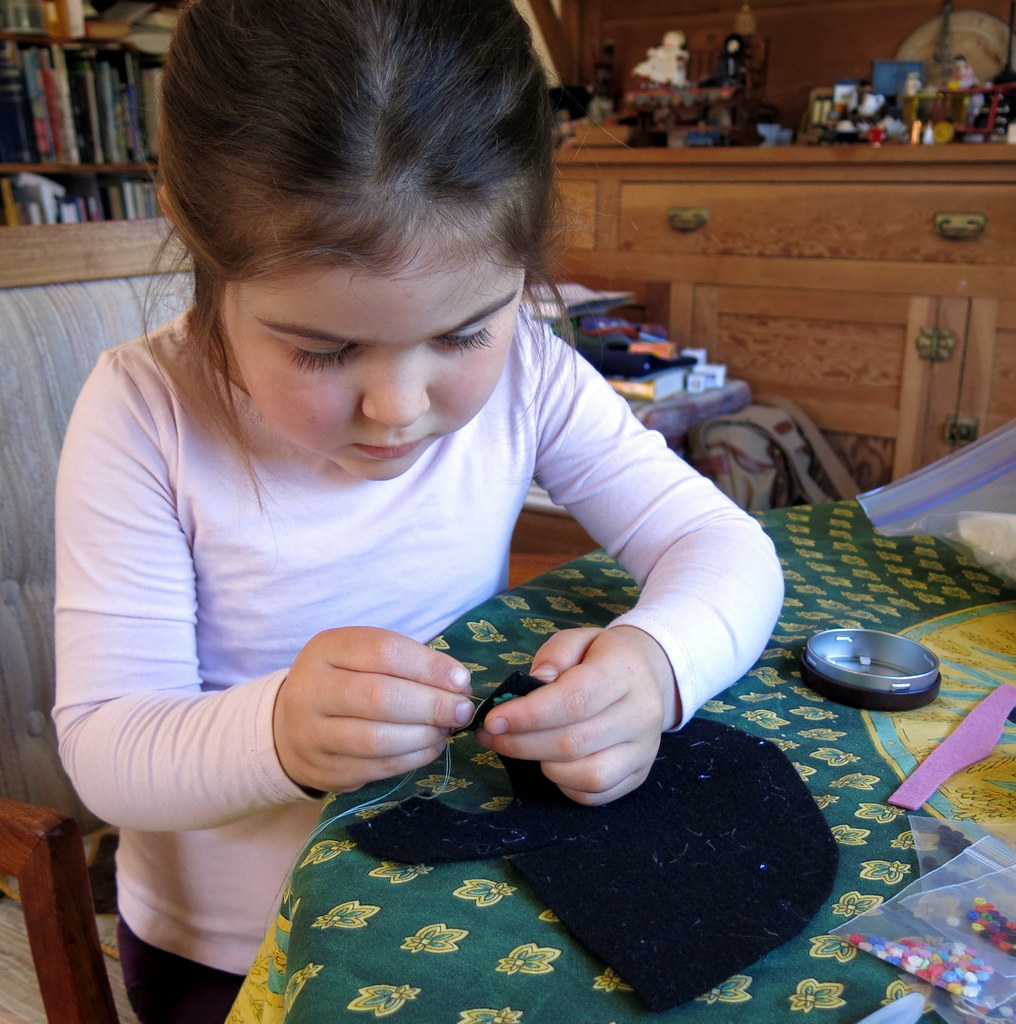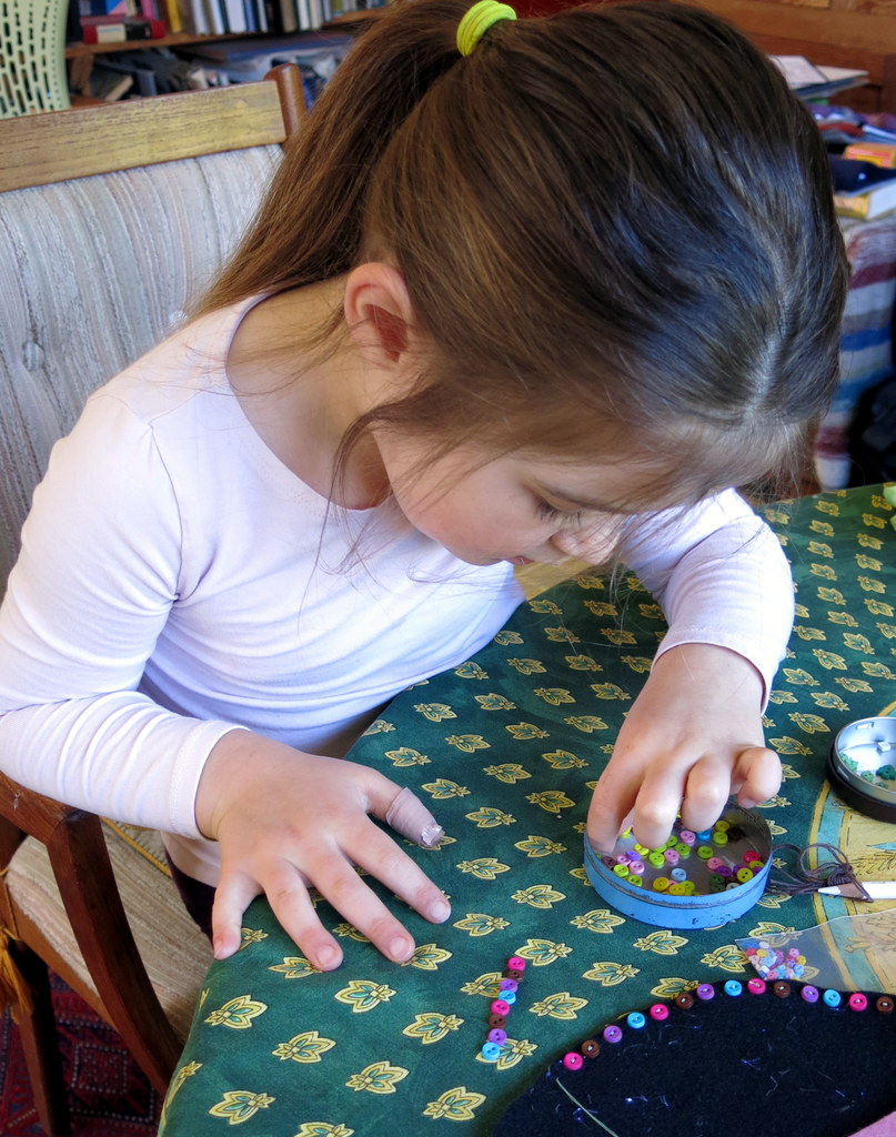 Small human started by sewing on the buttons…