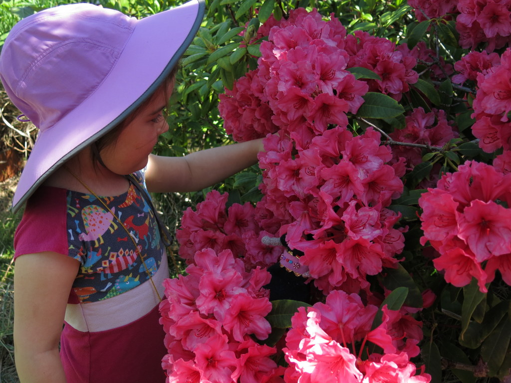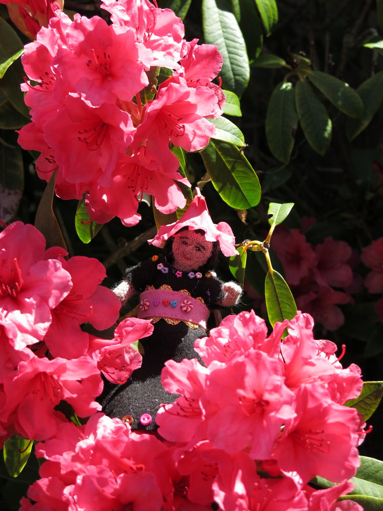 1. Lovely! I really enjoy the Rhododendron flowers, and yes they do make the most perfect hats! I recently took a photo of my little NASB doll, Nancy lying in a bed of pink Rhododendron flowers.