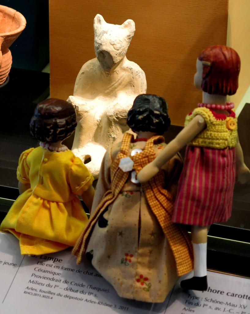 The girls found the giant amphorae very daunting! Luckily they also found some miniature ones, as well as tiny lamps and glass vessels. There must have been little Gallo-Roman girls playing house with their Hittys in ancient Arelate, don’t you think?