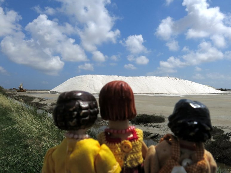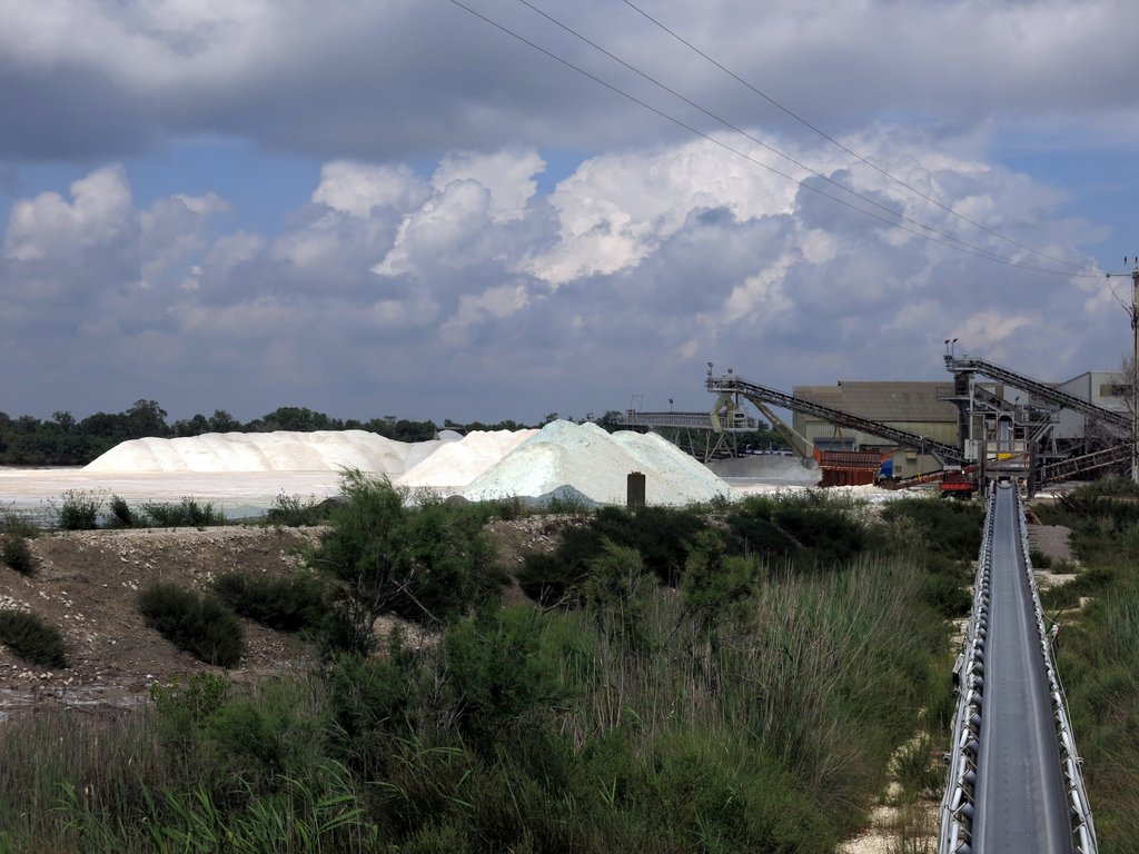 …where we saw huge heaps of salt. Sea water is let into flat areas and left to evaporate. Giant machines collect the salt…