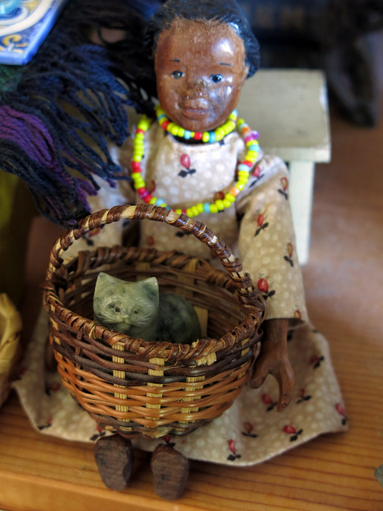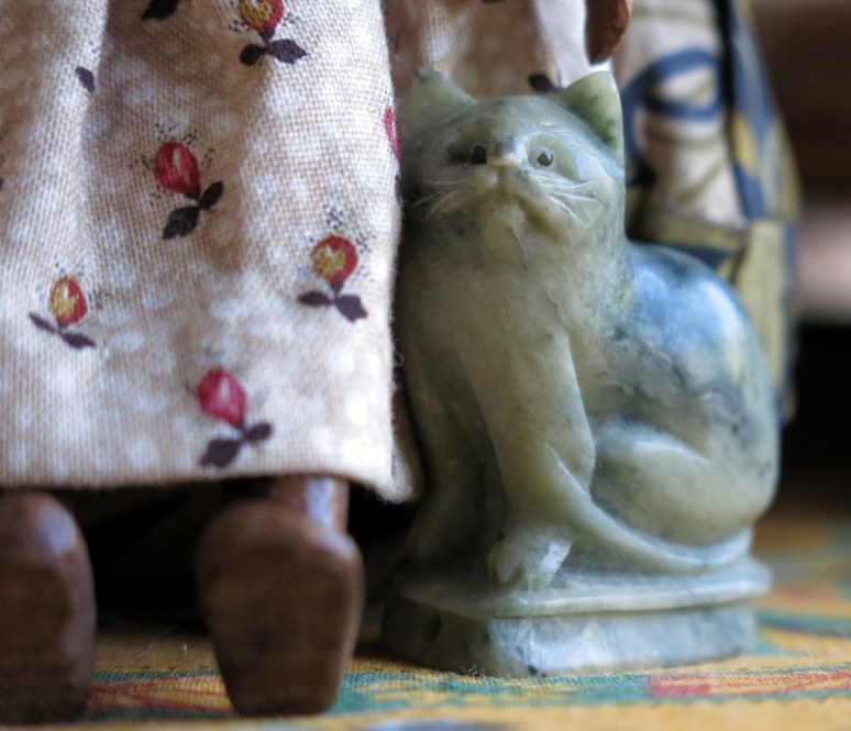 3. Love the expression on that little carved cat. How sweet of Tuesday to adopt her. I am sure she will be a great addition to the Quimper cupboard. By the way it is lovely to see Tuesday out and about..she is such a darling.