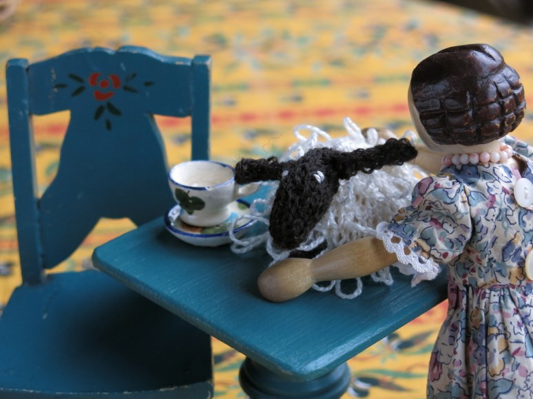 Rose was not quite sure what she had wrought at the end of this knitting adventure either! Constance pointed out that the too big hat was just the right size to warm her too cold teapot.