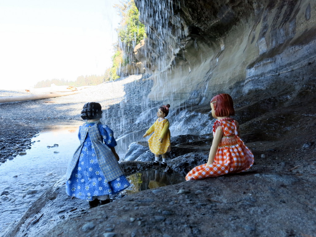 They climbed beneath a waterfall