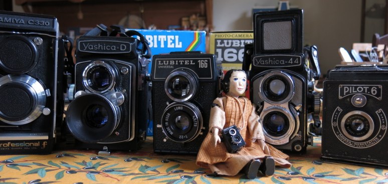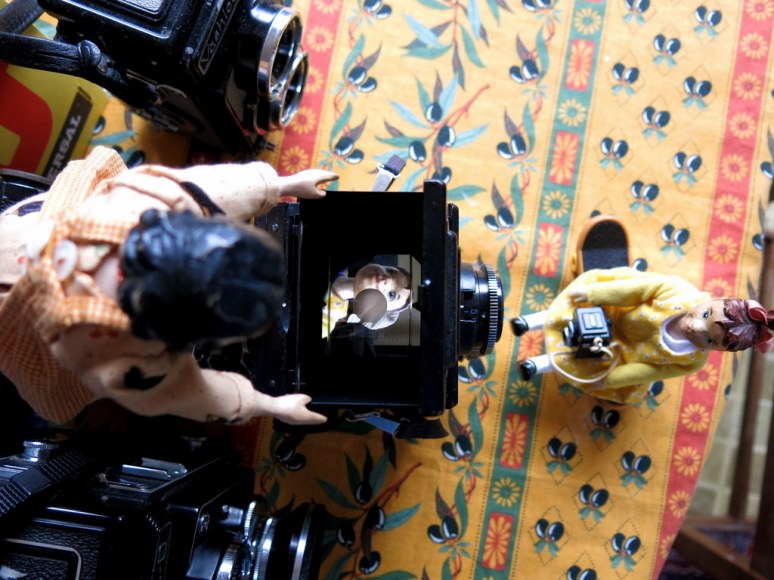 • Tansy examined the instructions thoroughly – if she found any thing too inscrutable, the photographer helped her out! She had fun learning the ins and outs and ways around the twin lens cameras, big and little!