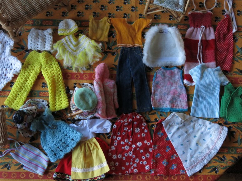 Thank you so much to our young friend, who decided she didn’t need these items any longer, and made a special trip to bring them to the Hittys. Some of the clothing was made for our friend’s mother’s well-endowed plastic doll some time ago, and we appreciate the generosity!