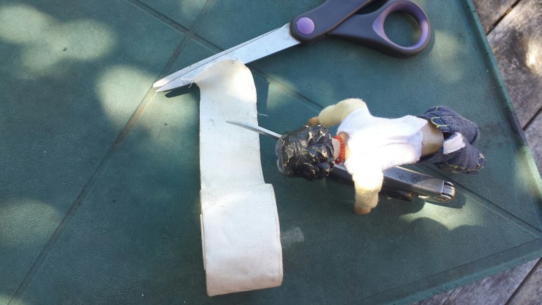 It was medical tape or duct tape! Tansy says the medical tape is better – more comfortable and is at least made of recent plants (rubber and cotton). She says duct tape is unnatural as it is made of prehistoric plants refined out of recognition!