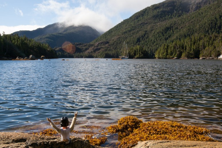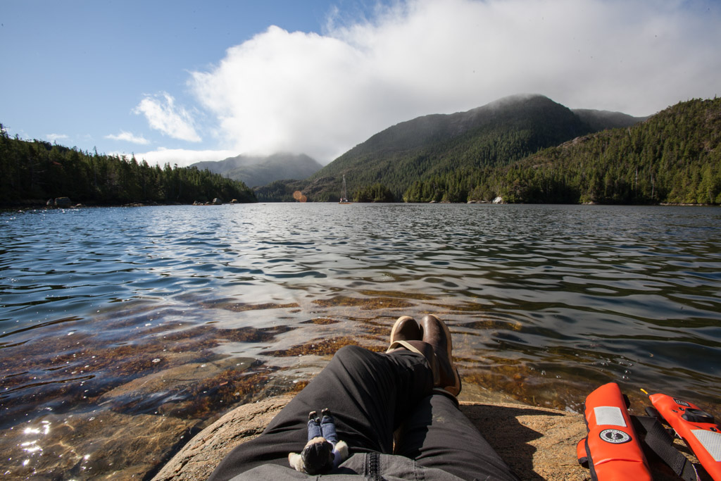 Tansy has been floating around in Haida Gwaii with her favourite photographer, the rest of the crew and the guests on the schooner Passing Cloud! Here is the schooner at anchor in De La Beche Inlet, while a guest has an idyllic paddle in a kayak nearby.