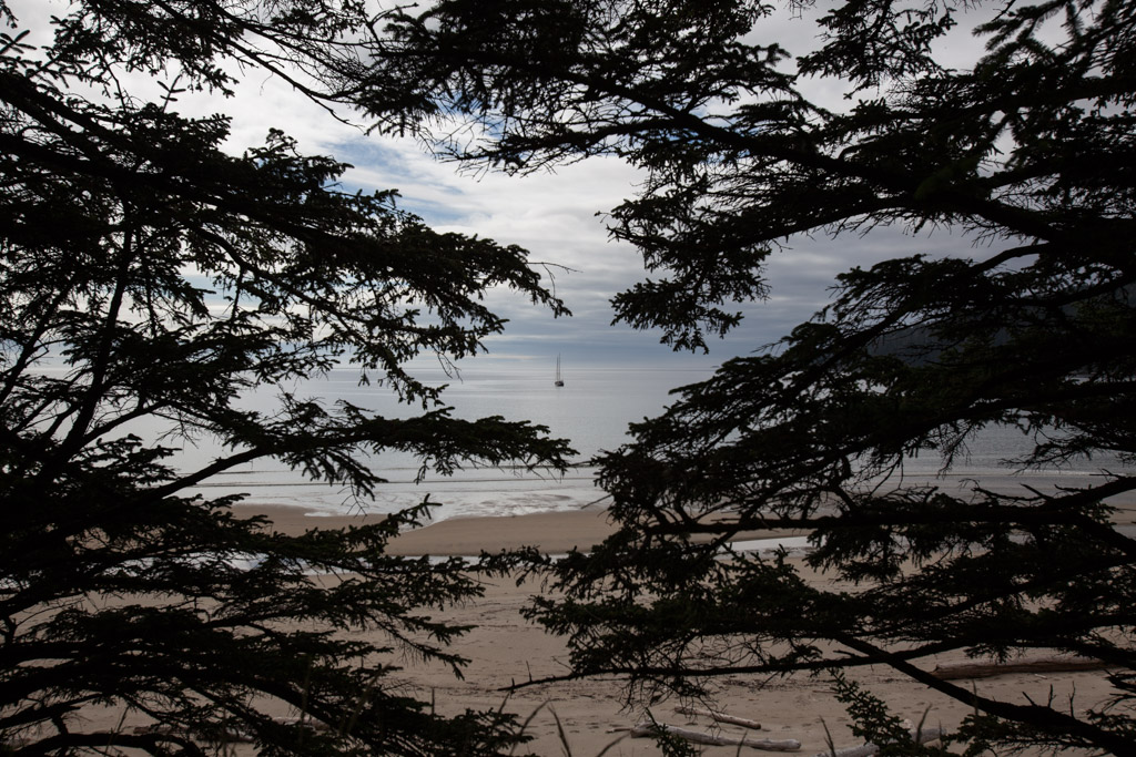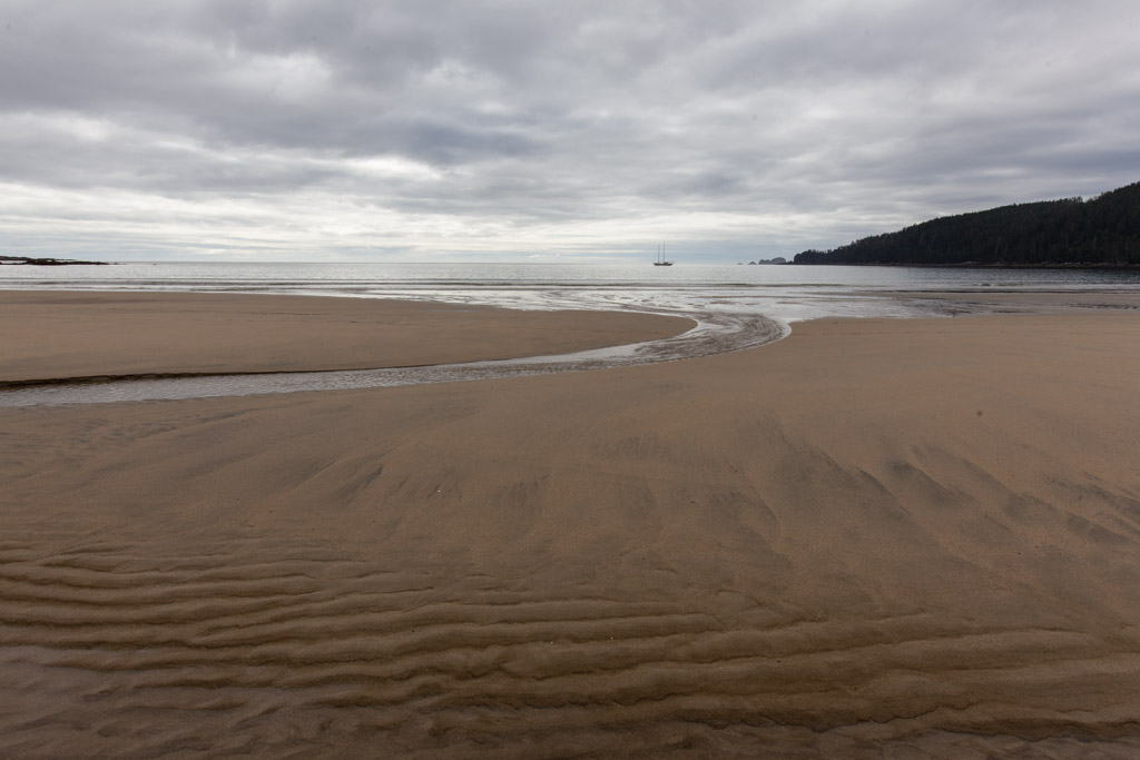 Tansy was thrilled that the Passing Cloud could stop in Woodruff Bay. It holds one of her favourite beaches (see here for other visits). While it’s the nearest anchorage to Cape St James often the wind and sea conditions make it an unsafe place to anchor, or to disembark.