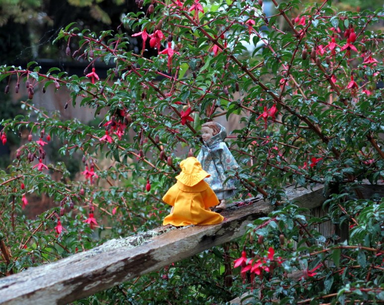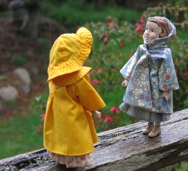 1. This is another charming narrative….we at Müttersholtz are all quite damp too..soggy actually. Cheery, sweet raincoats are just the “ticket” for dear Hittys that their mistresses can admire between raindrops.