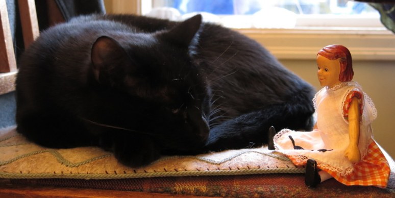 2. Black cat day?!! Who knew!!! We have no less then 9 of them outside in the barn!!! Aurelia is very brave…altho I believe that any Hitty would be safe from our crew unless the Hitty was smeared with wet cat food! Love the photos and your little black cat as well as the large one!