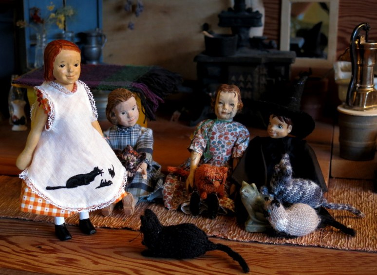 1. I always highly enjoy the artistic touches in your photos….the photo itself, the set-up, the props, the dolls…what a lovely little black cat apron! Did you embroider it?