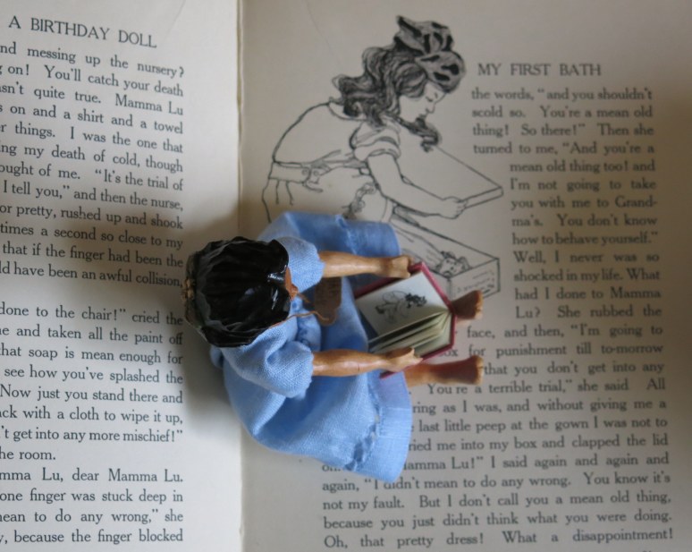 When I was in the Ozarks, I bought a little tiny version of a book called Diary of a Birthday Doll. The Hittys always appreciate it when I get them books they can actually read, and this was a book I already had in my bookshelf in human scale!