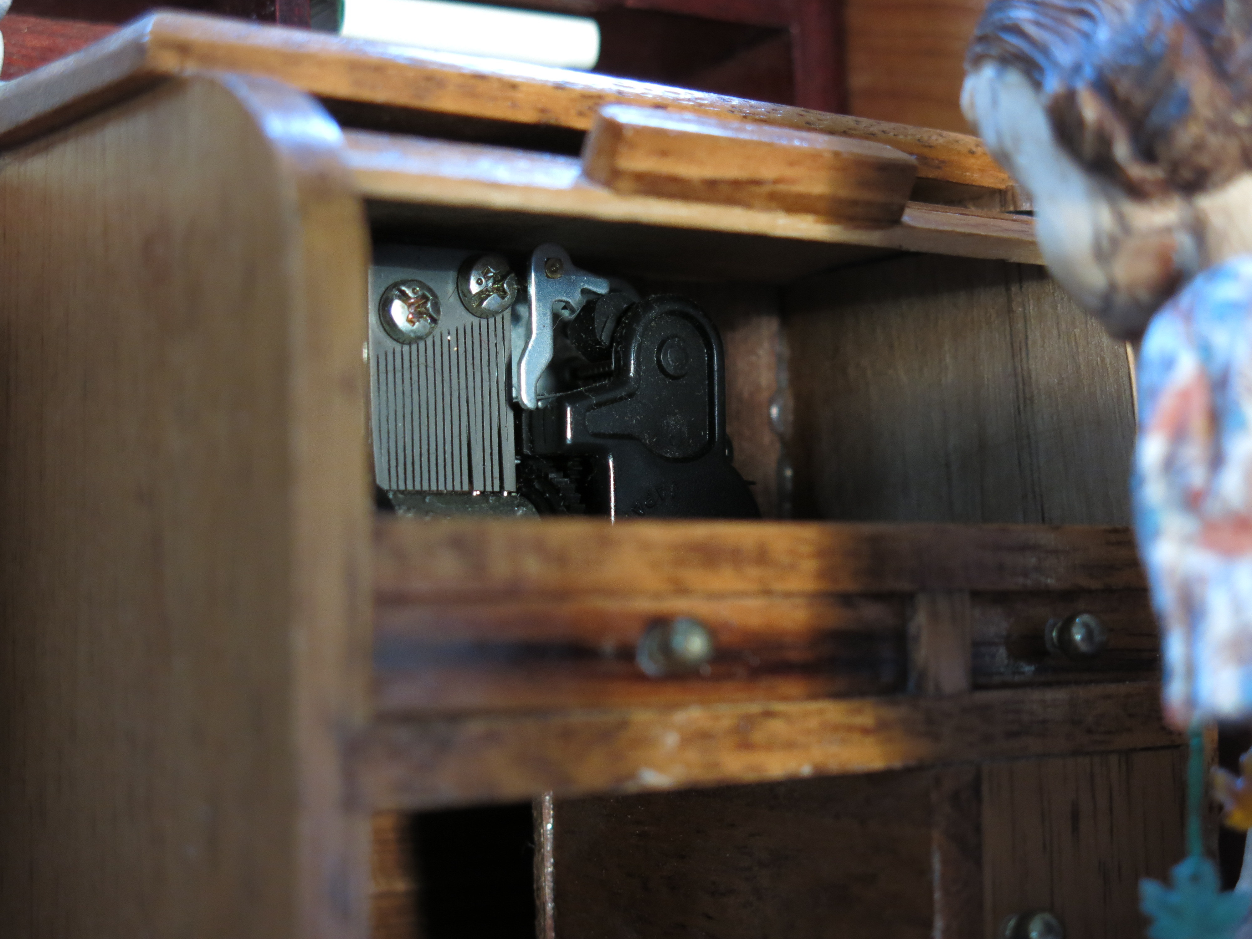 …at least she was pleased until she discovered a music box taking up almost the entire interior of the desk.