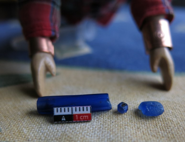 Paul found the long bead at Cumshewa, the tiny faceted one at K’uuna (Skedans), and the broken large one at