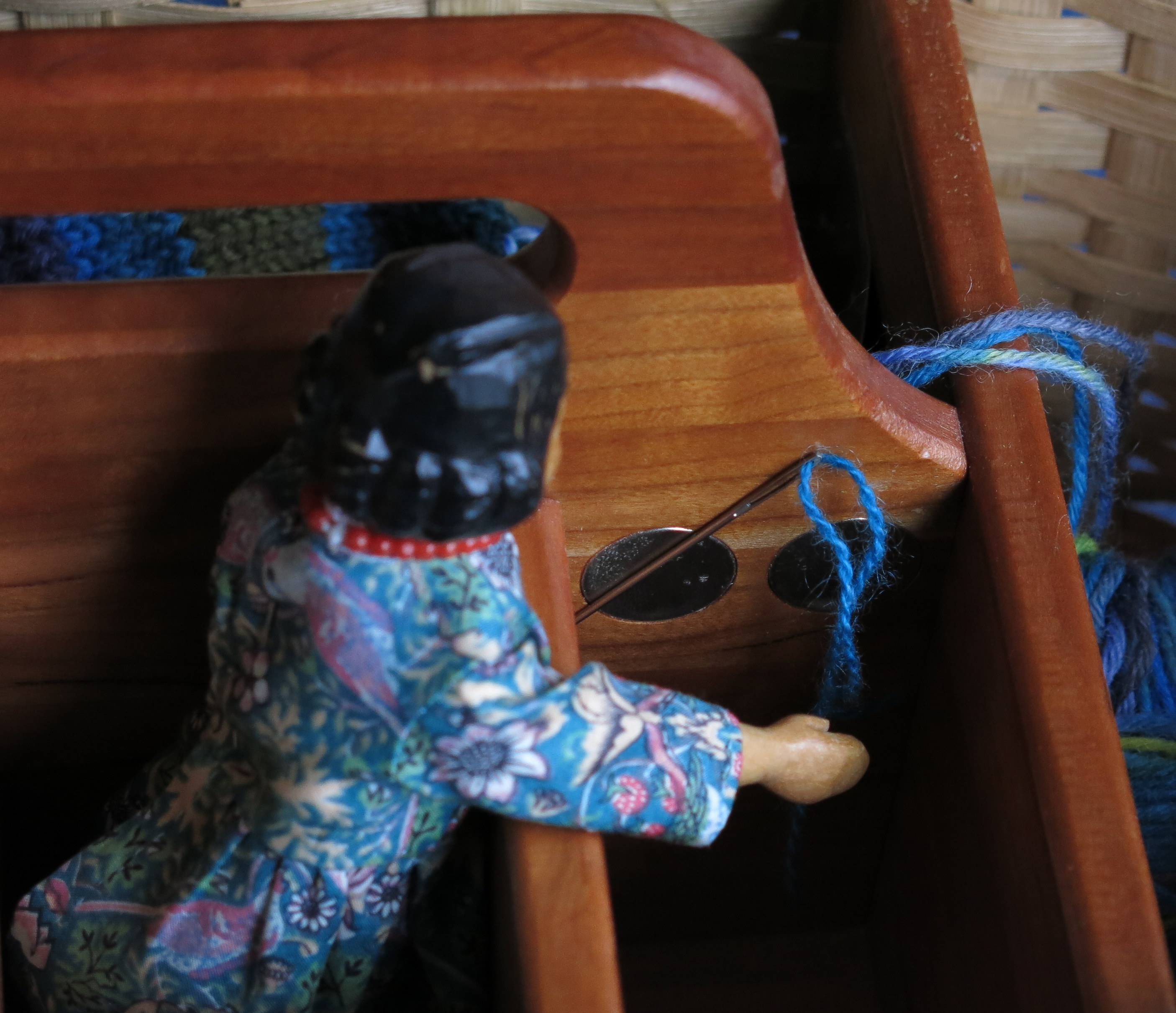 We are using up two balls of yarn to make these Hitty sleeping bags, and with each in its own compartment there is much less tangling!
