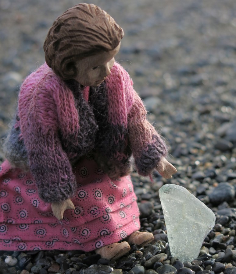 and a pretty,warm sweater is essential. Nice collection of beach glass.