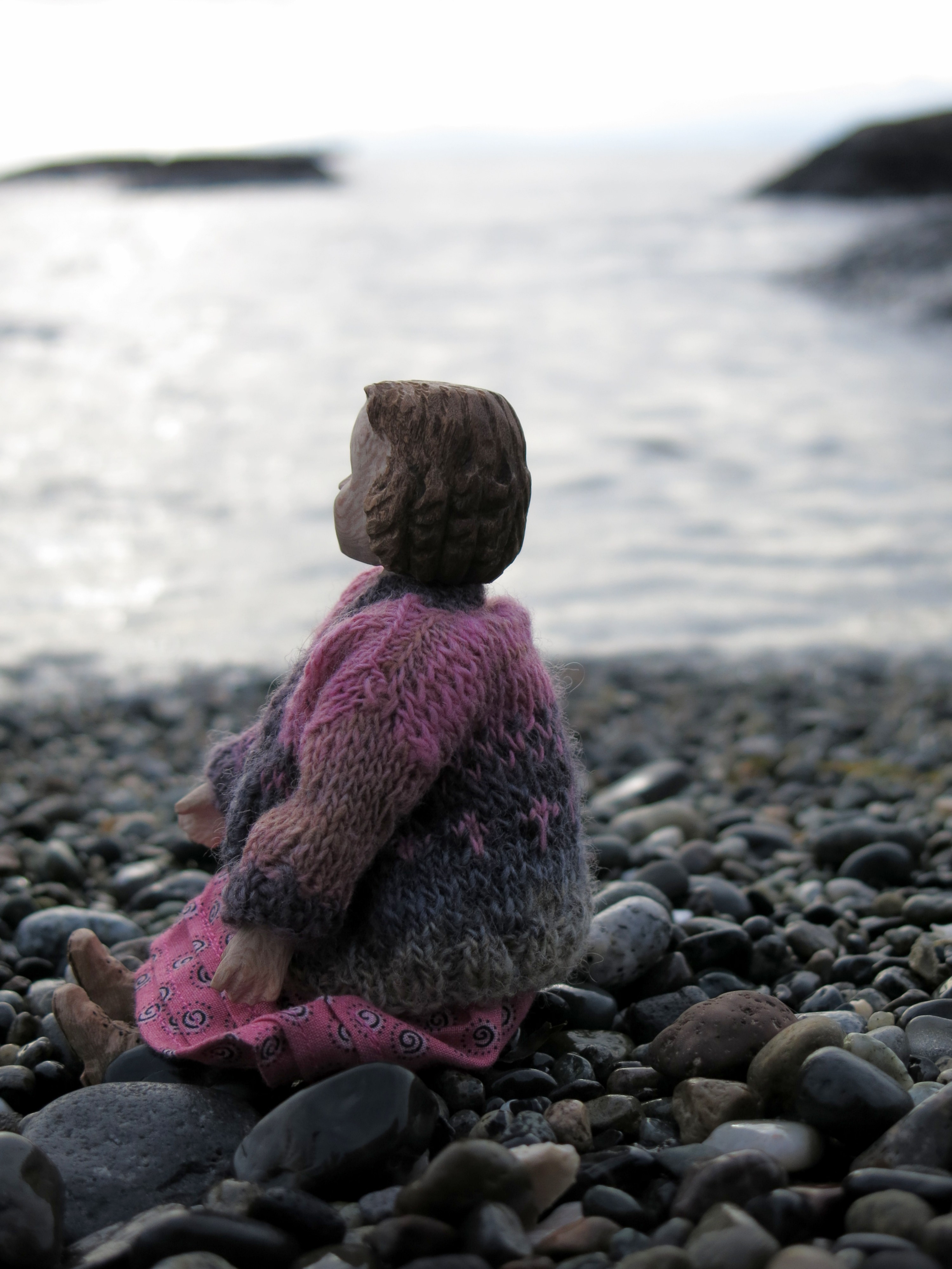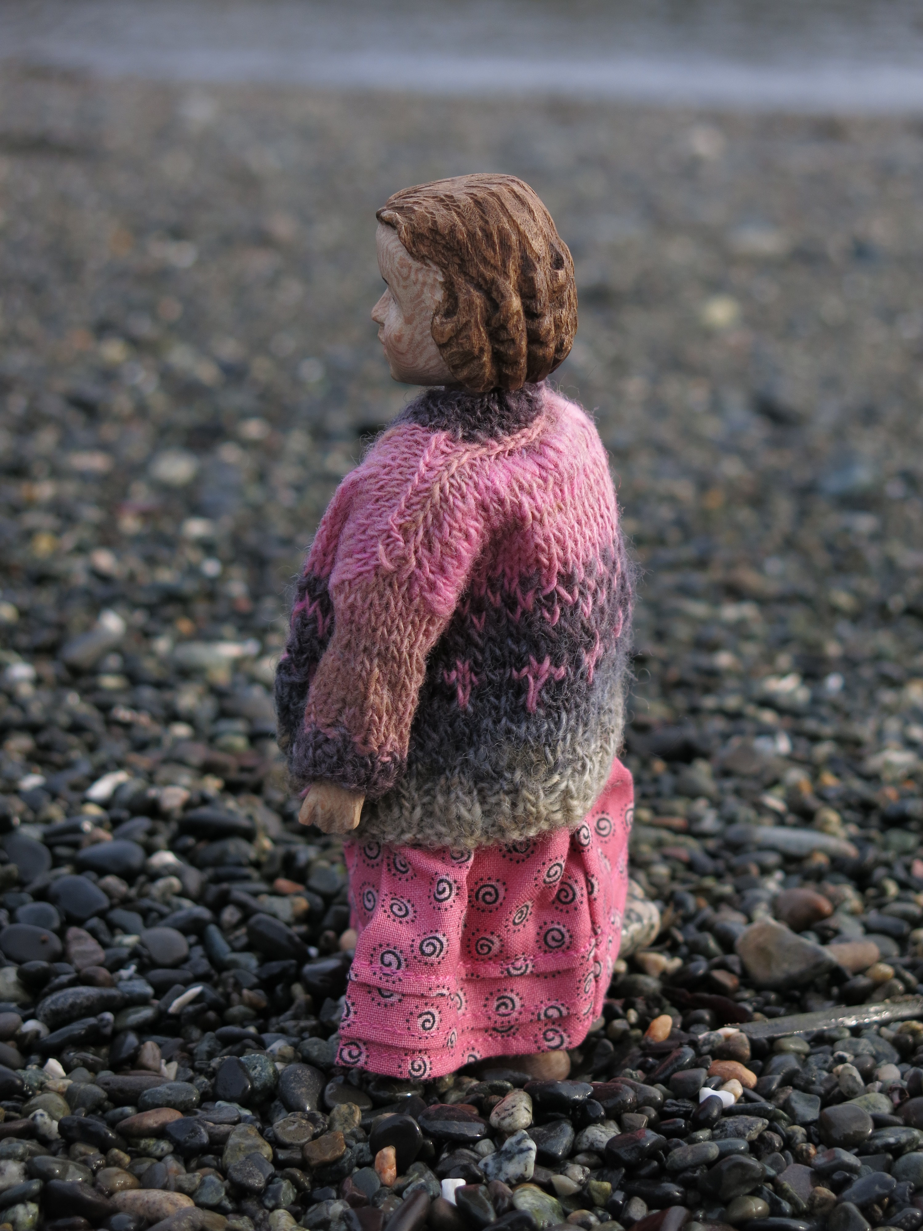 and a pretty,warm sweater is essential. Nice collection of beach glass.