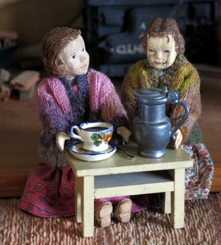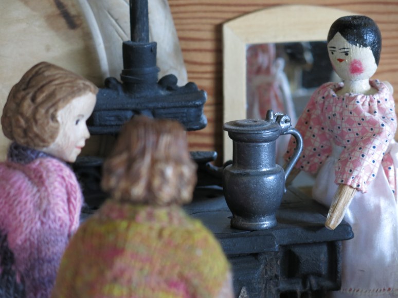 Jane is a prop and support to the denizens of the Quimper Hitty cupboard. She keeps them fed and cheered up…it seems to be in her nature, and the Hittys appreciate her very much.