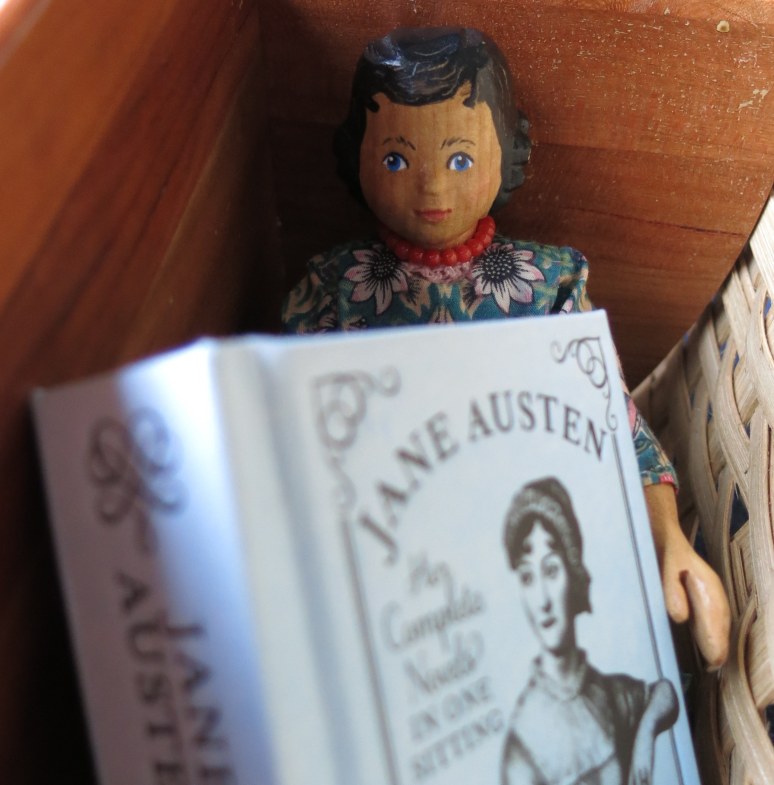 Rose has discovered that the workbasket is a great place to cosily sit and read a favourite book…