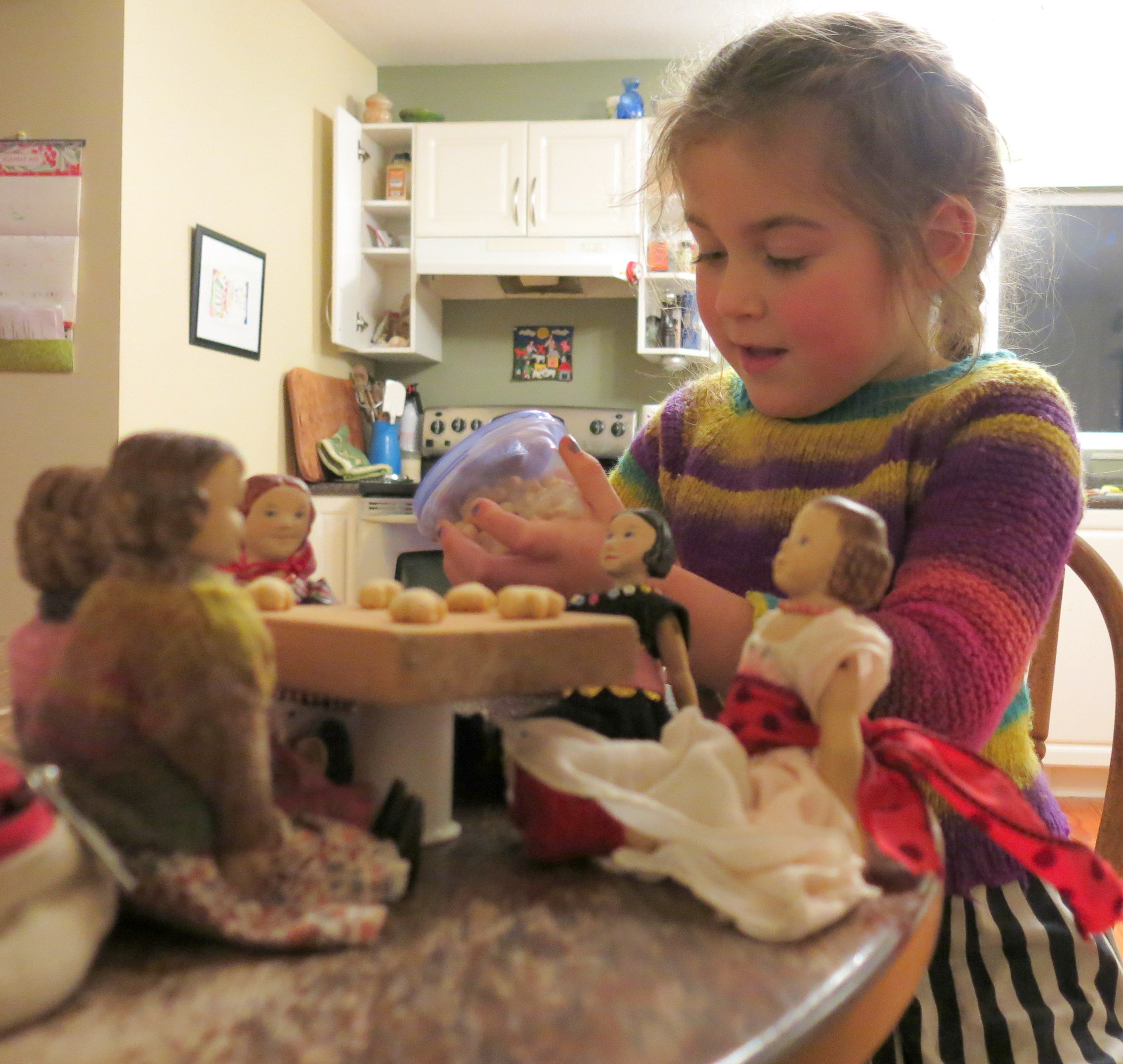 1. What fun! Eugenia and Arianell meeting their cousin Linnea and youngest member of the family. Fun always follows when youngest member is present. Is there anything better than a table filled with fresh baked Christmas cookies and flowers? Yes! Sampling those yummy treats with special loved ones. A-w-w,