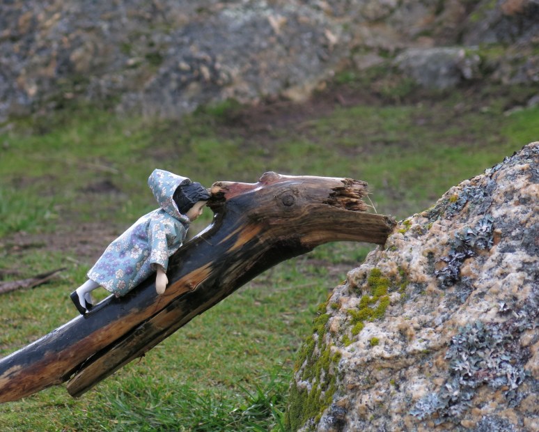 …and she climbed up a stick – it wasn’t high but it was slippery and she slowly slipped down and down.