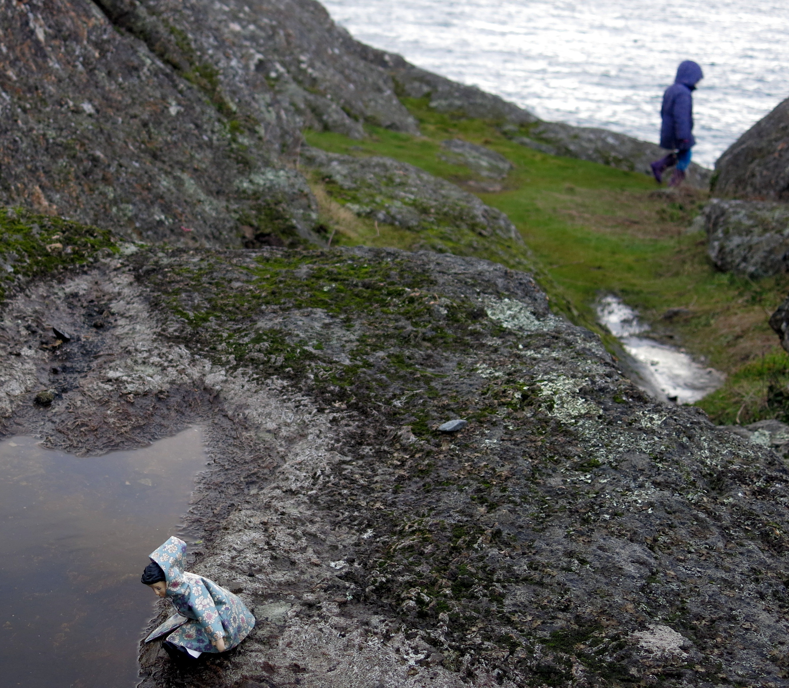 They went to the rocky foreshore, and Buttercup sat at a puddle…