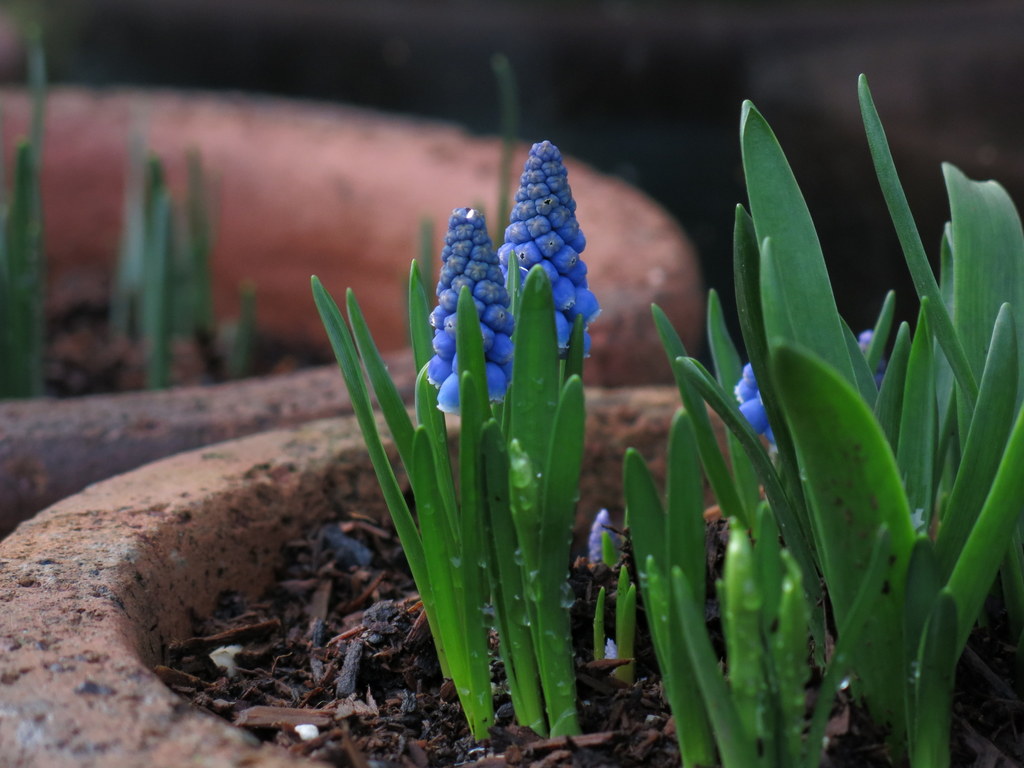 1. How great to see these greening plants and so lovely blue grape hyacinths (? I assume). We are covered in what feels like feet of snow, some ice and winds. Your posting brings hope for Spring…months away here.