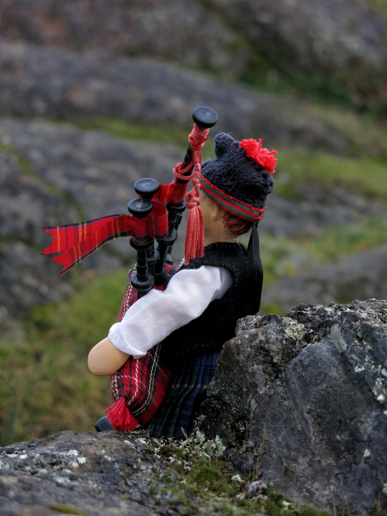 Having looked up the recipe for Haggis I am not sure whey Mungo would be disappointed at its absence! I hope the porridge was a good end to his day of piping and walking. Was it served with brown sugar and cream? Love seeing Mungo with his pipes and kilt.