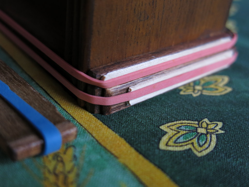 Elastics were also used to clamp the pull-support and the base mouldings while they dried (more waiting, sigh).