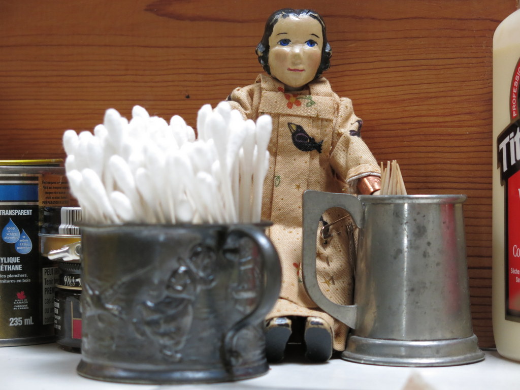 This is another jaw dropping find…and a jaw dropping repair…what a beautiful writing desk, and leave it to the Quimper’s to bring out a Hitty size inkwell and quill.