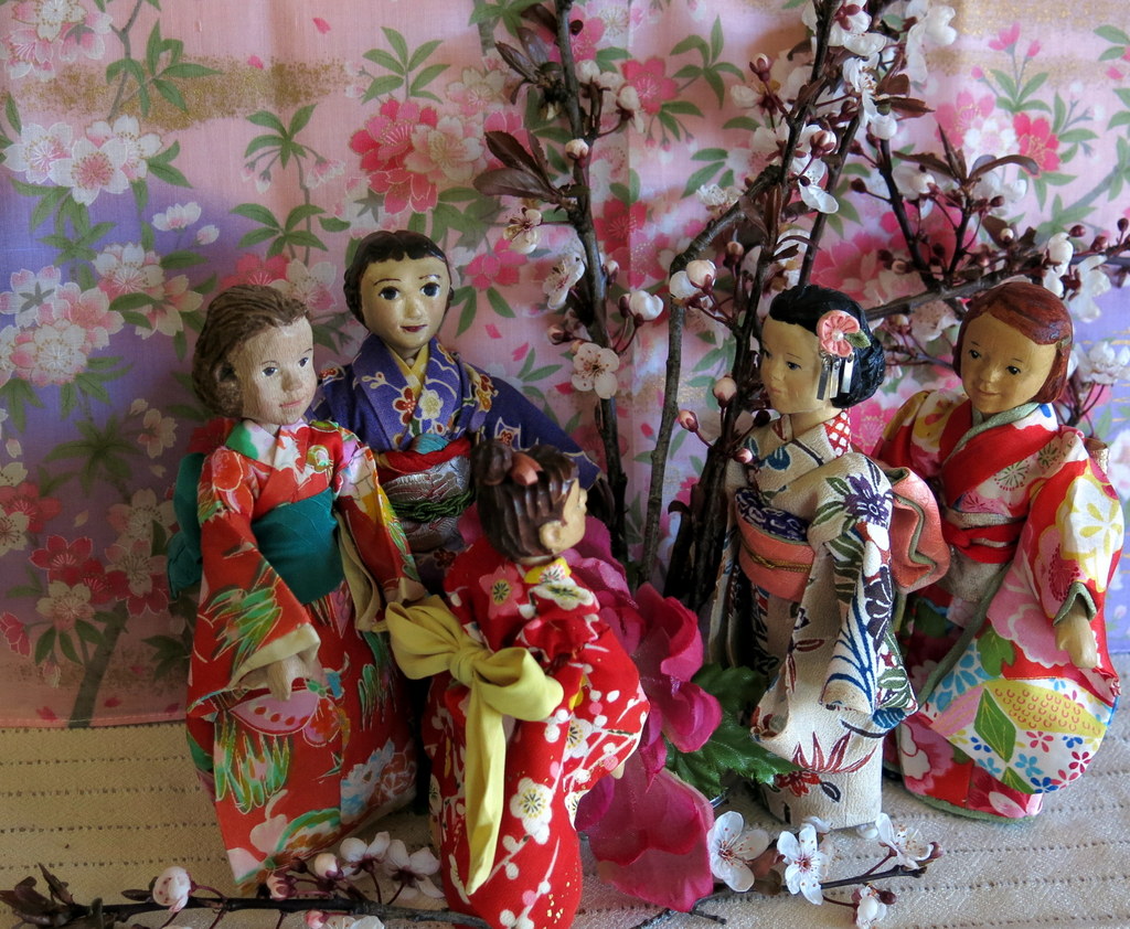 Wow! The girls are all so beautiful in their kimonos. I love the hair ornament that Patience is modeling. The kimonos are so colorful and the girls all look so delicate in them. Wonderful.