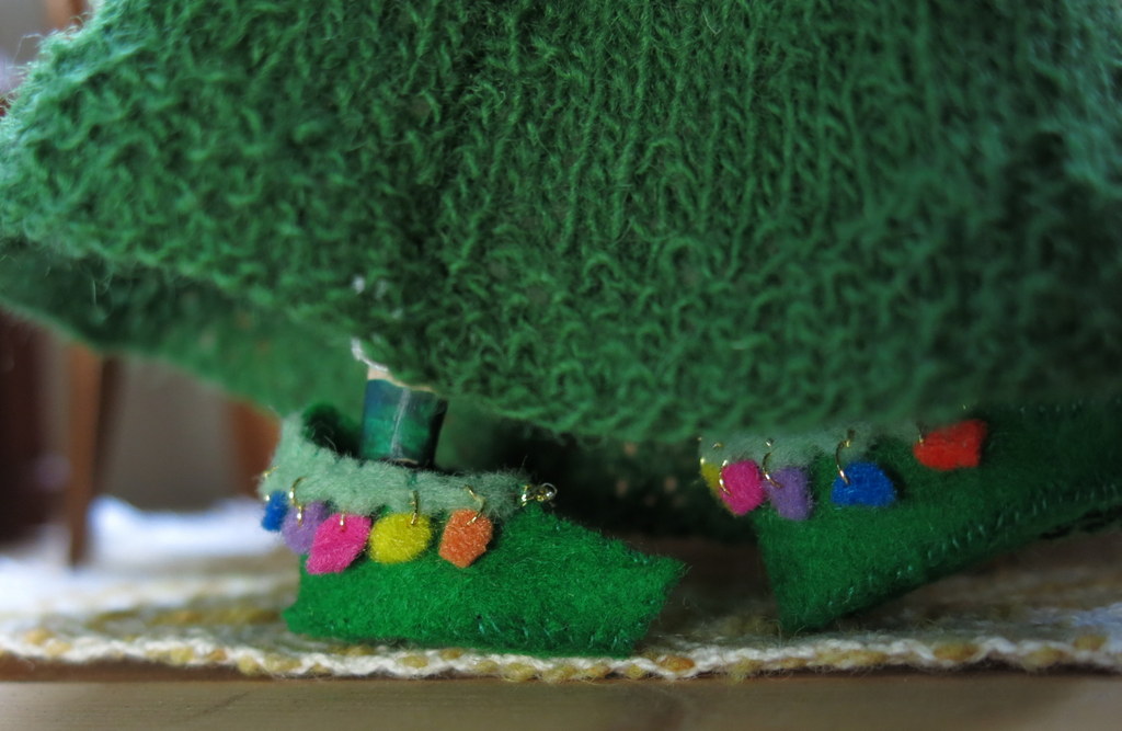 The little pixie shoes were fun to make, I used just a few scraps and some metallic thread…I am glad you like it, Carrot Soup certainly does!
