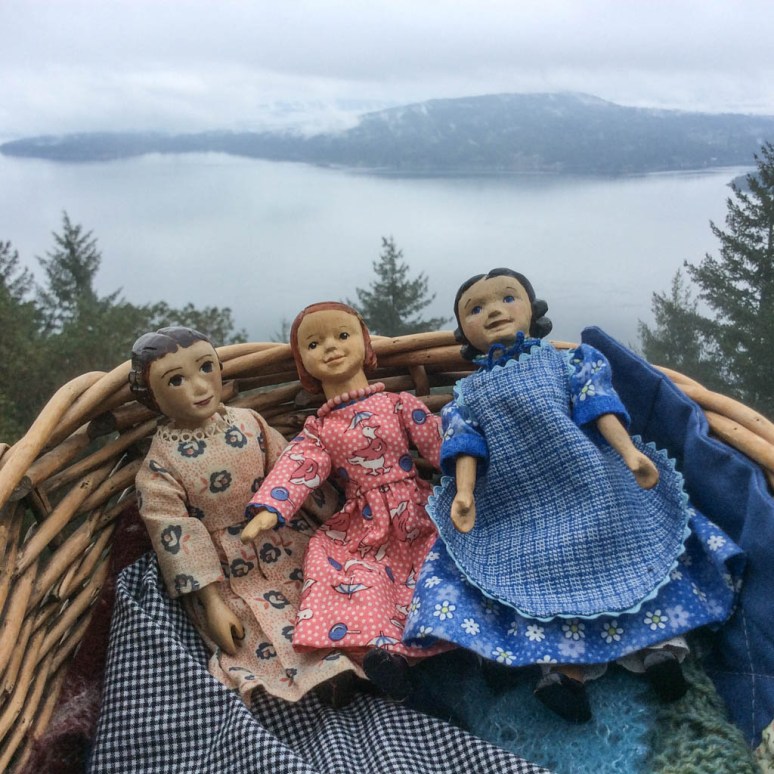 Tatty, Aurelia and Constance hopped into the traveling basket for a trip through the dripping wet rainforest..