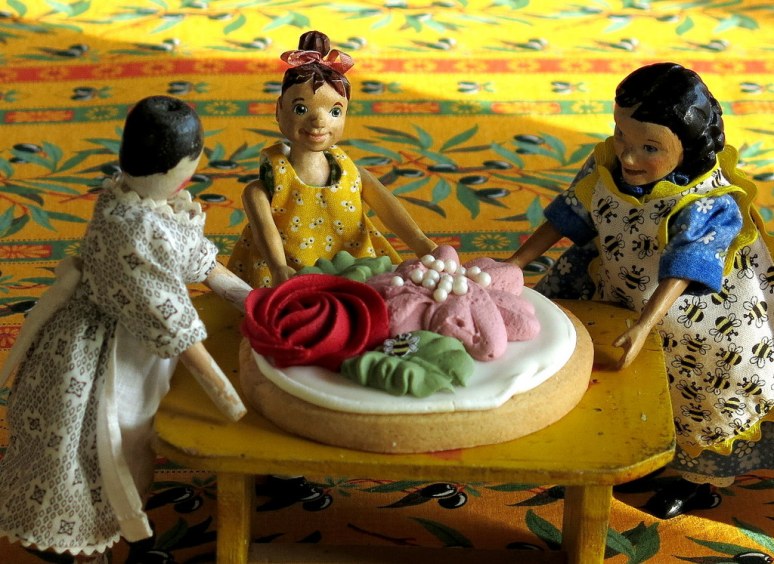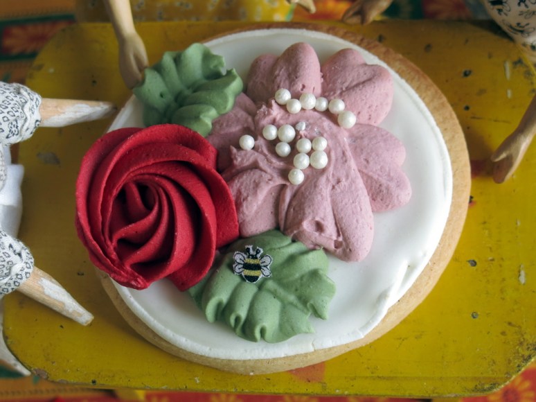 1. WOW!! My favorite cookie..an iced sugar cookie and that is really a fantastic icing !! Love seeing the happy girls playing patty cake and dear Jane working away!